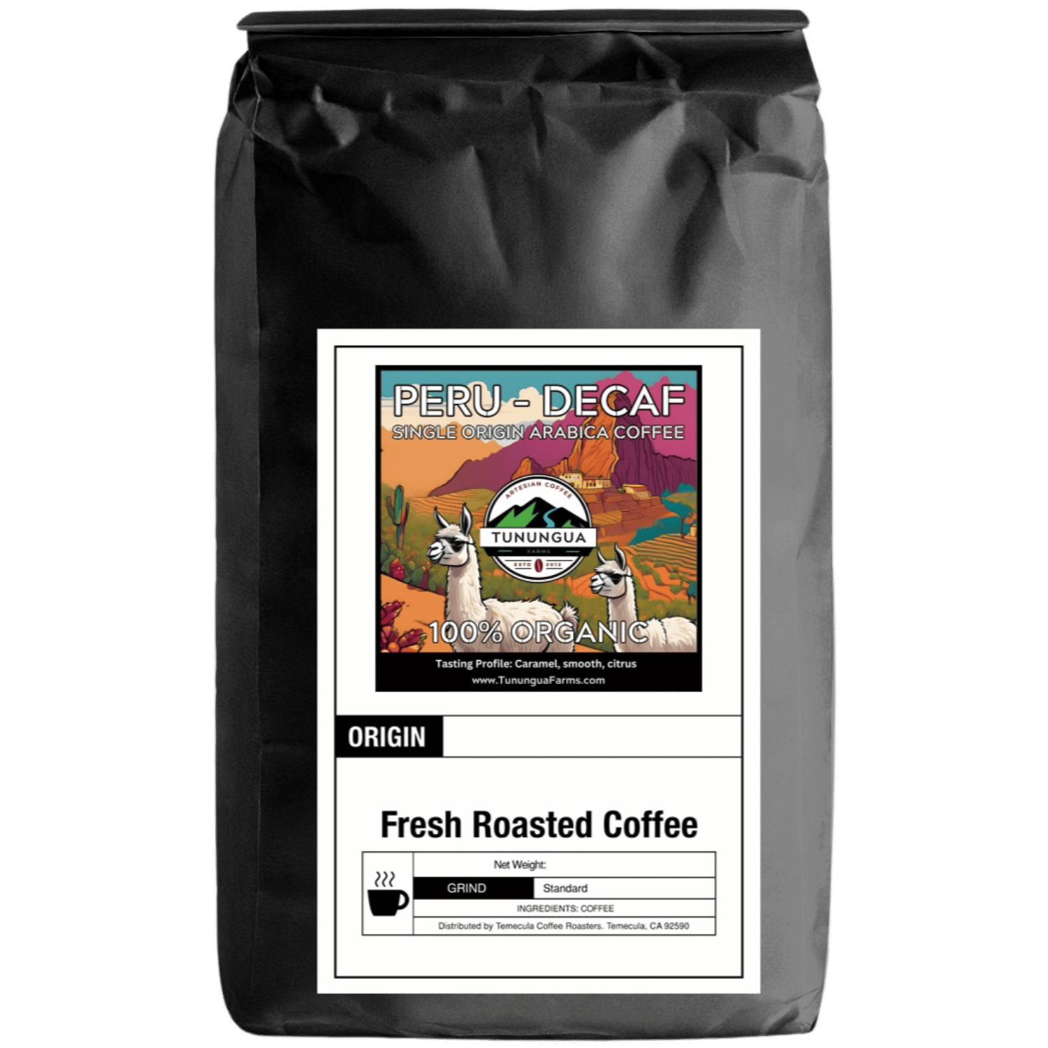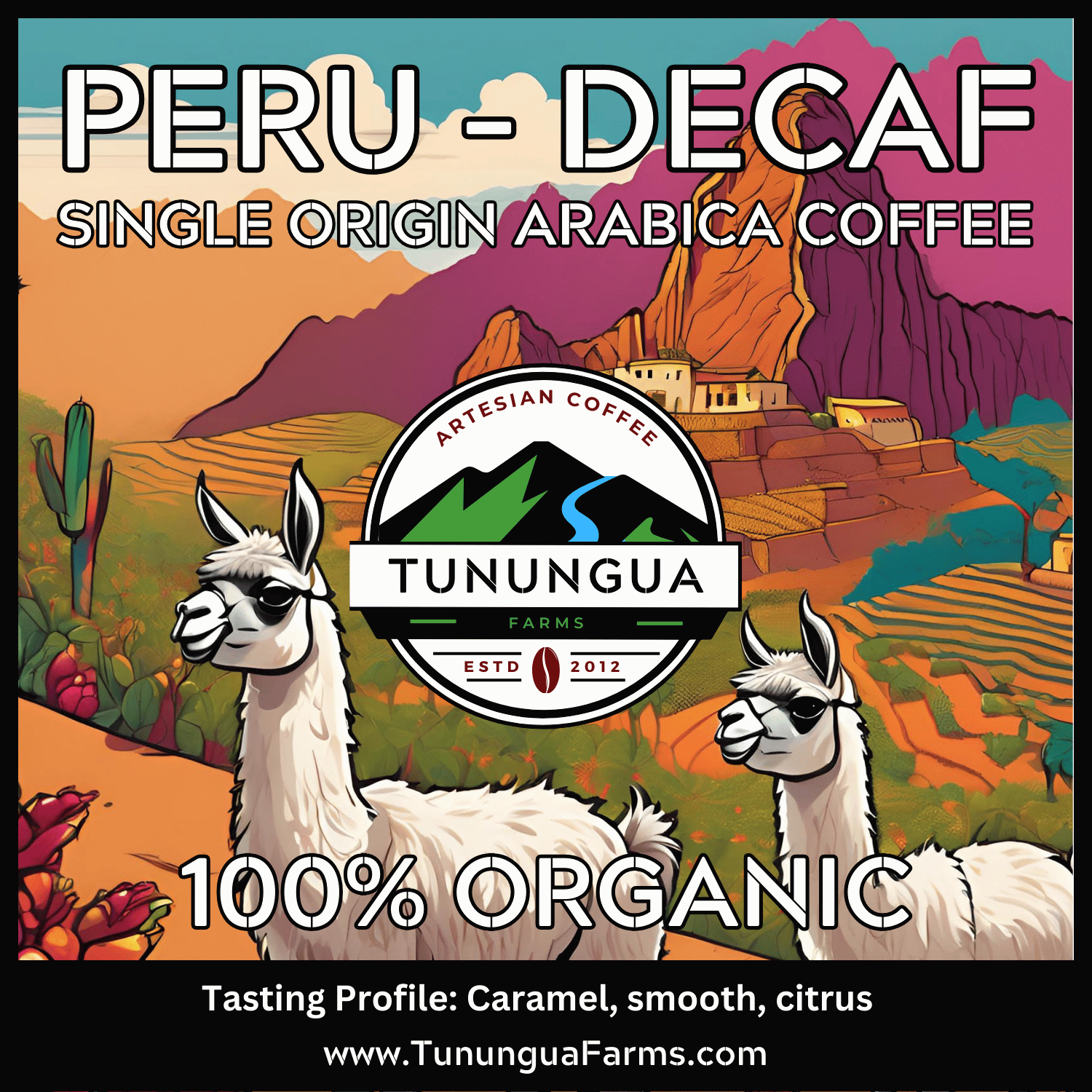Process: Fully washed and dried in the sun and decaffeinated using the Swiss Water Process.